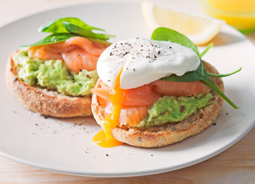we pile these snacks high with sliced alligator pear, spinach leaves, and our delicious smoked salmon.
